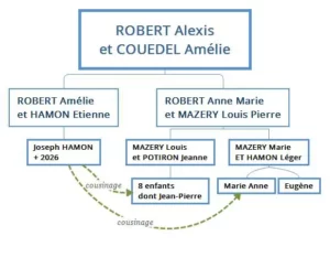 Les enfants MAZERY (descendants de Louis et Jeanne) sont les petits cousins de Joseph HAMON : voir le schéma ci-contre.
